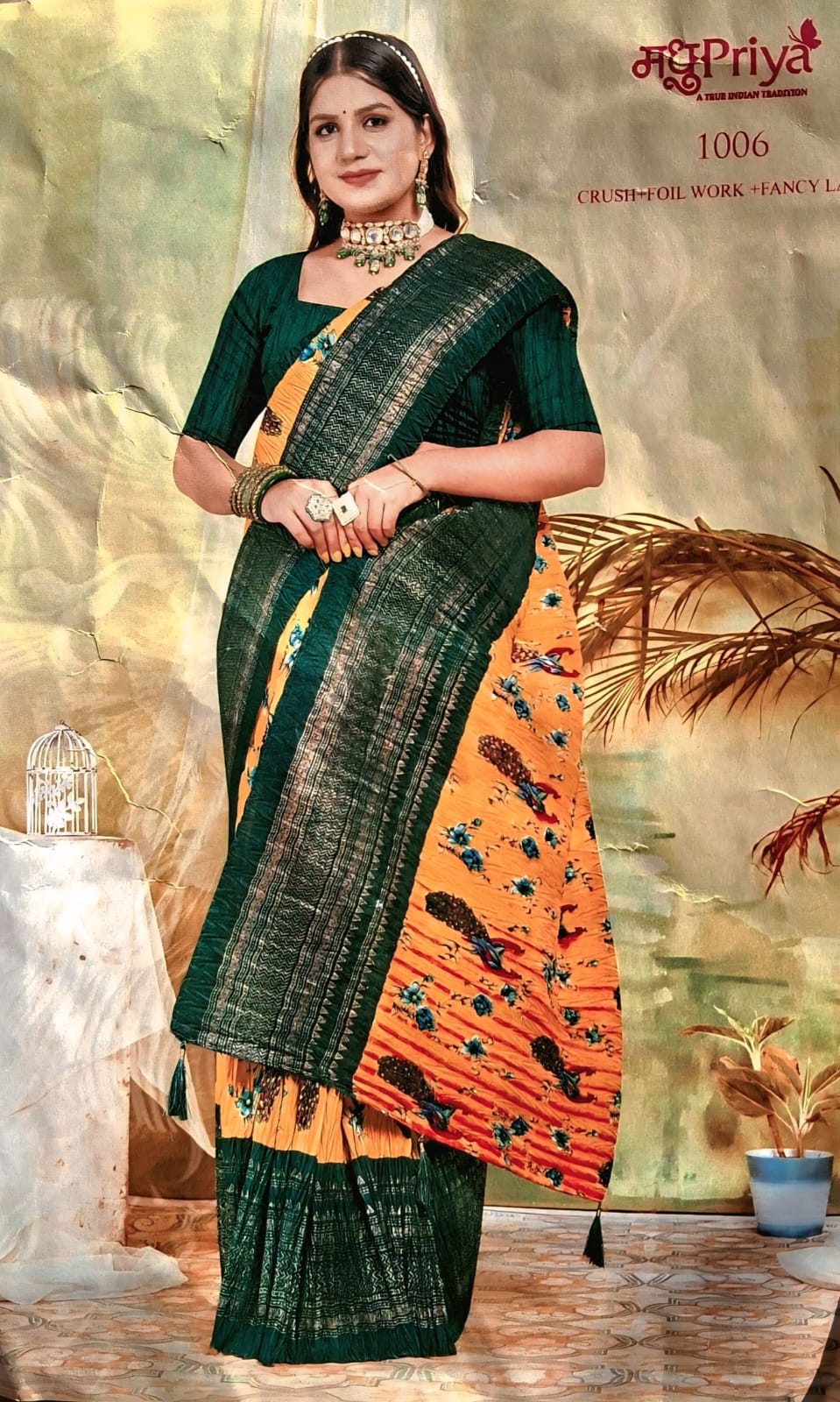crush foil work Saree with fancy blouse